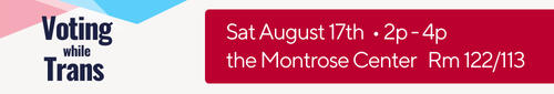 Join us for a rights and resources workshop to address the challenges to voting faced by the transgender and gender non-conforming community.